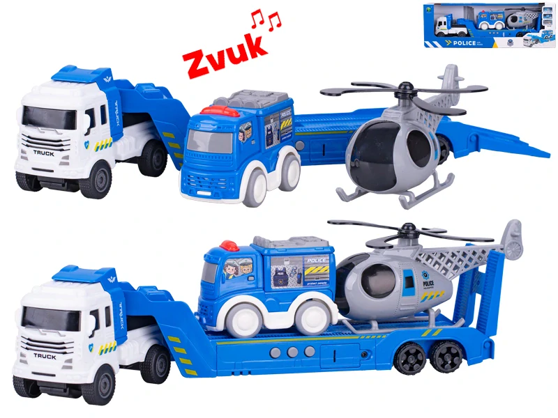- Auto nákladní 30cm na setrvačník na baterie se zvukem + vozidla policie 2ks v krabičce