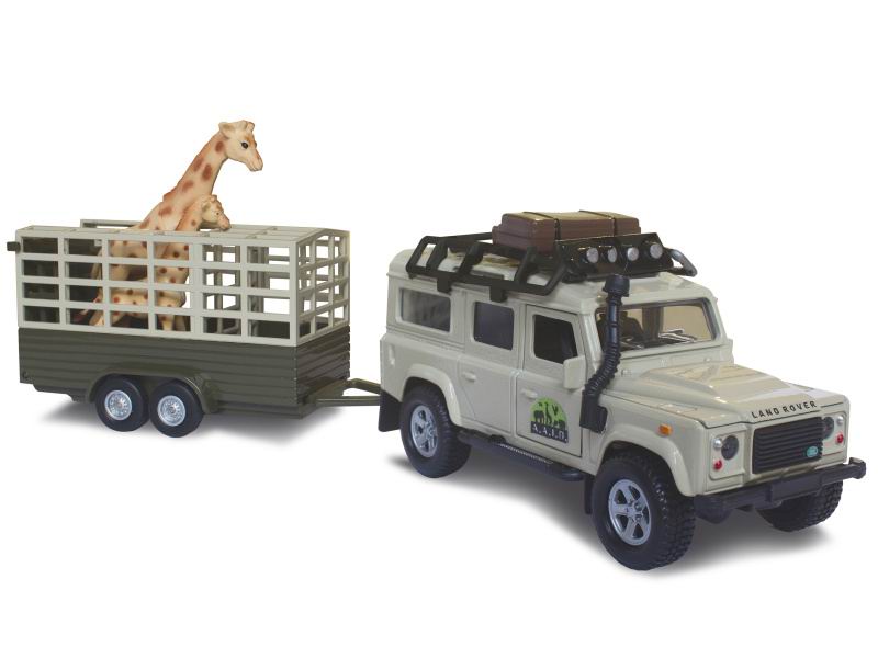 - Land Rover Defender 14cm kov PB s prívesem 14cm a žirafou v krabicce