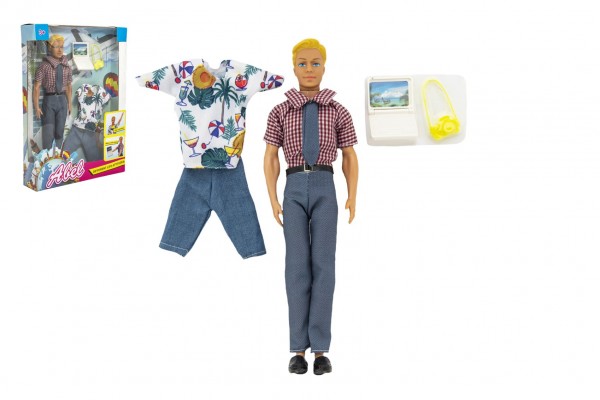 Panáček s doplňky nekloubový plast 30 cm v krabici 24x33x6cm