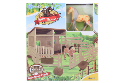 Skládací plastová stáj pro koně. Součástí balení je jeden koník. Rozměry balení cca 24 x 26 x 7 cm. Věk 3+