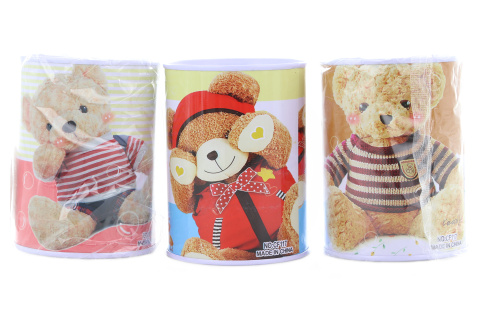 Kovová pokladnička s motivy autíček, medvídků a mnoho dalšího. Rozměr pokladničky cca 10 x 7,5 cm. Věk 3+