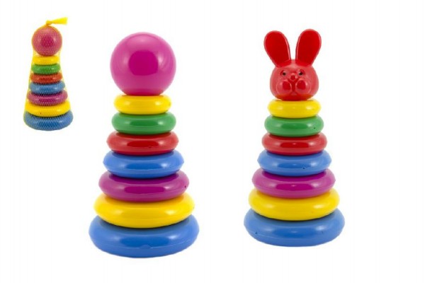 - Skládanka pyramida s kroužky plast 24cm asst 2 druhy v síťce 12m+
